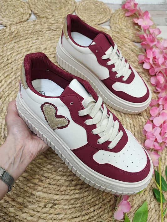 SNEAKER VICTORY - BEIGE Y GRANATE