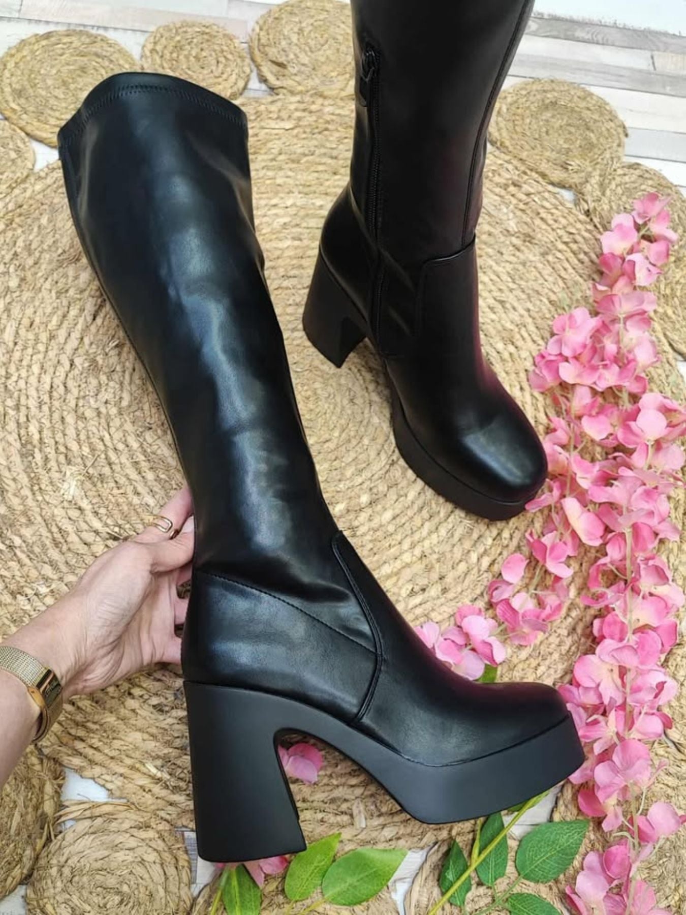 Botas de polipiel un poco elasticas.