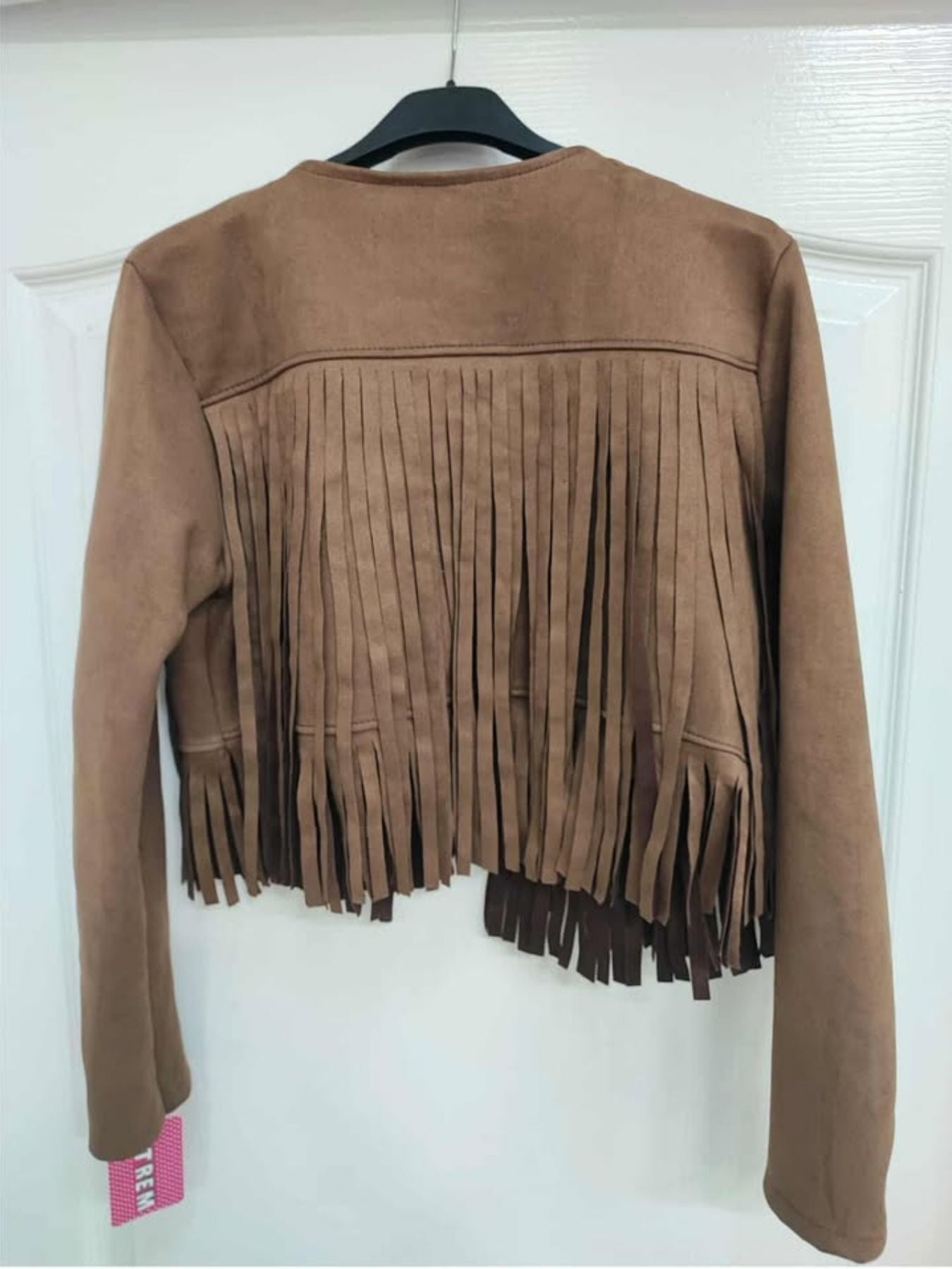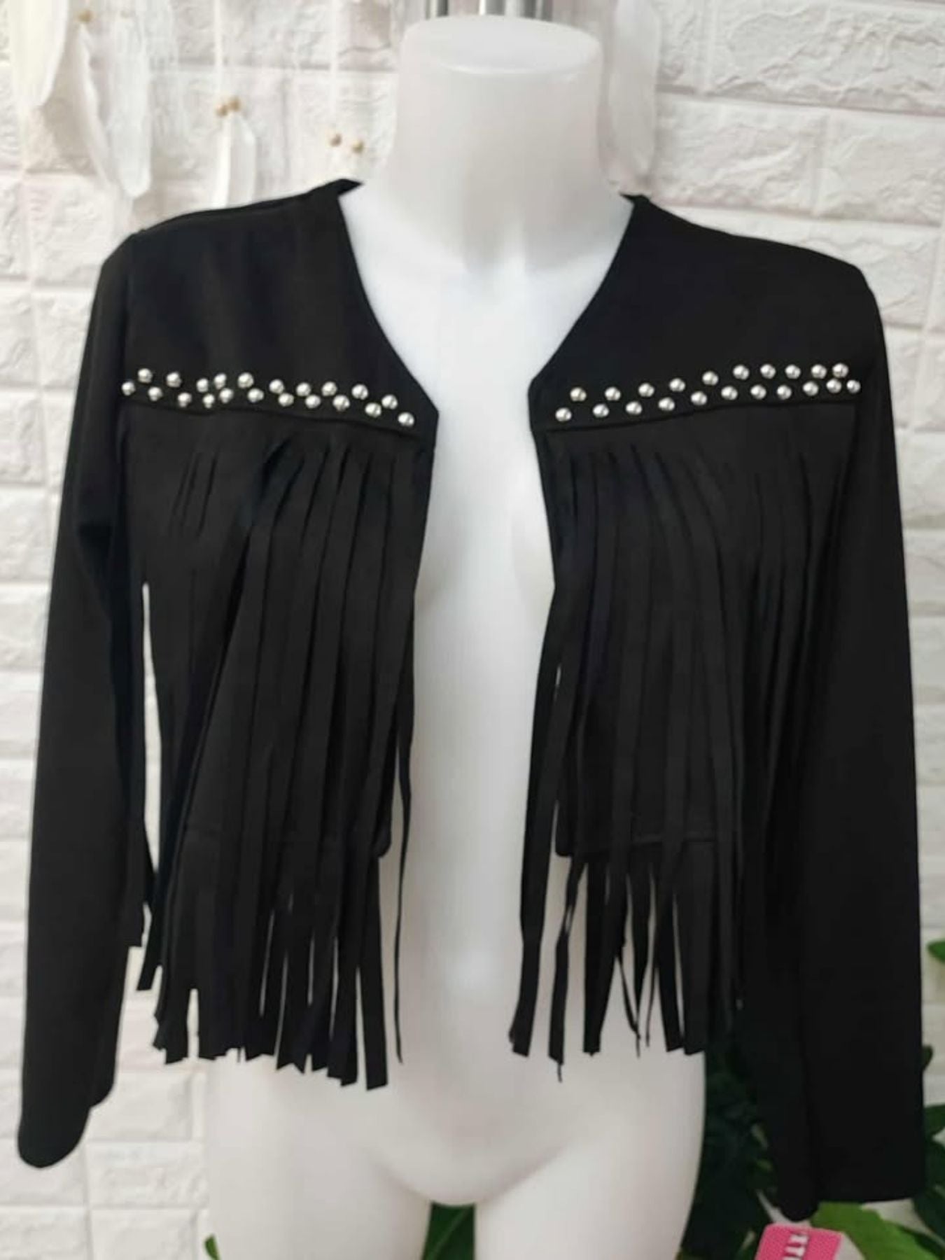 Cazadora de antelina combinada con tachuelas plateadas.