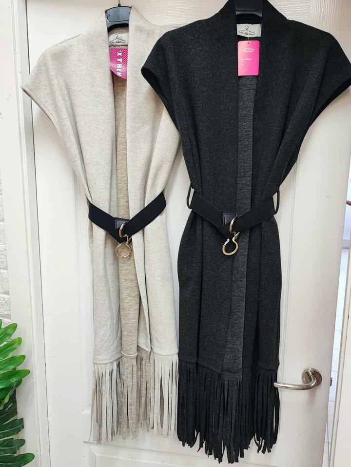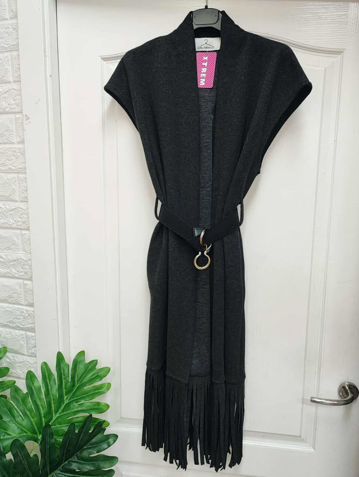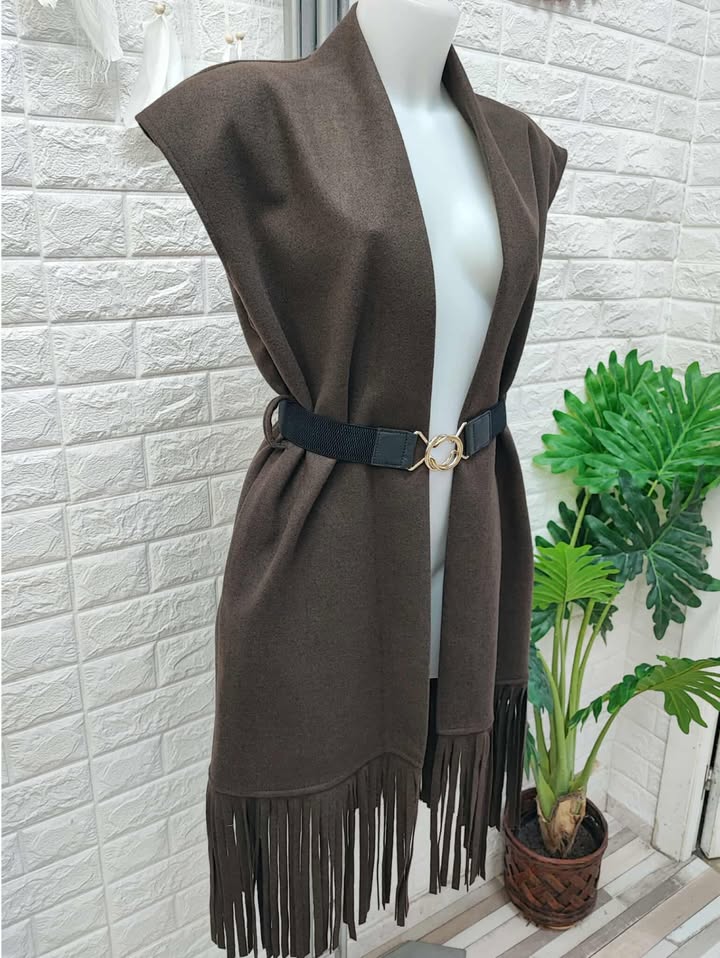 Chaleco tipo paño elastico combinado con flecos
