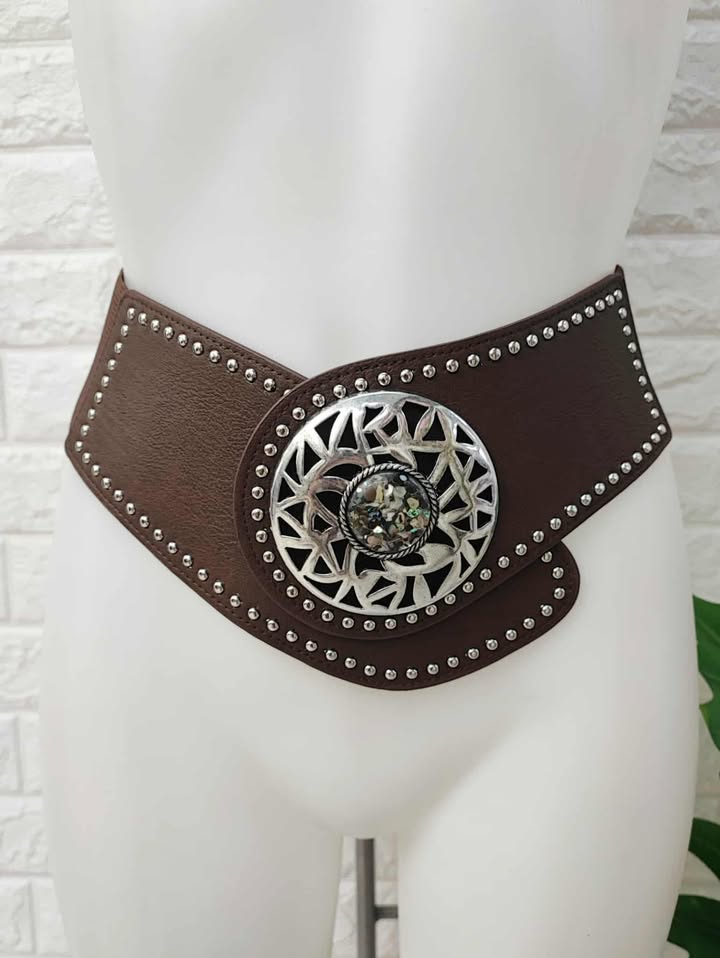 Cinturon de polipiel combinado con tachuelas plateadas.