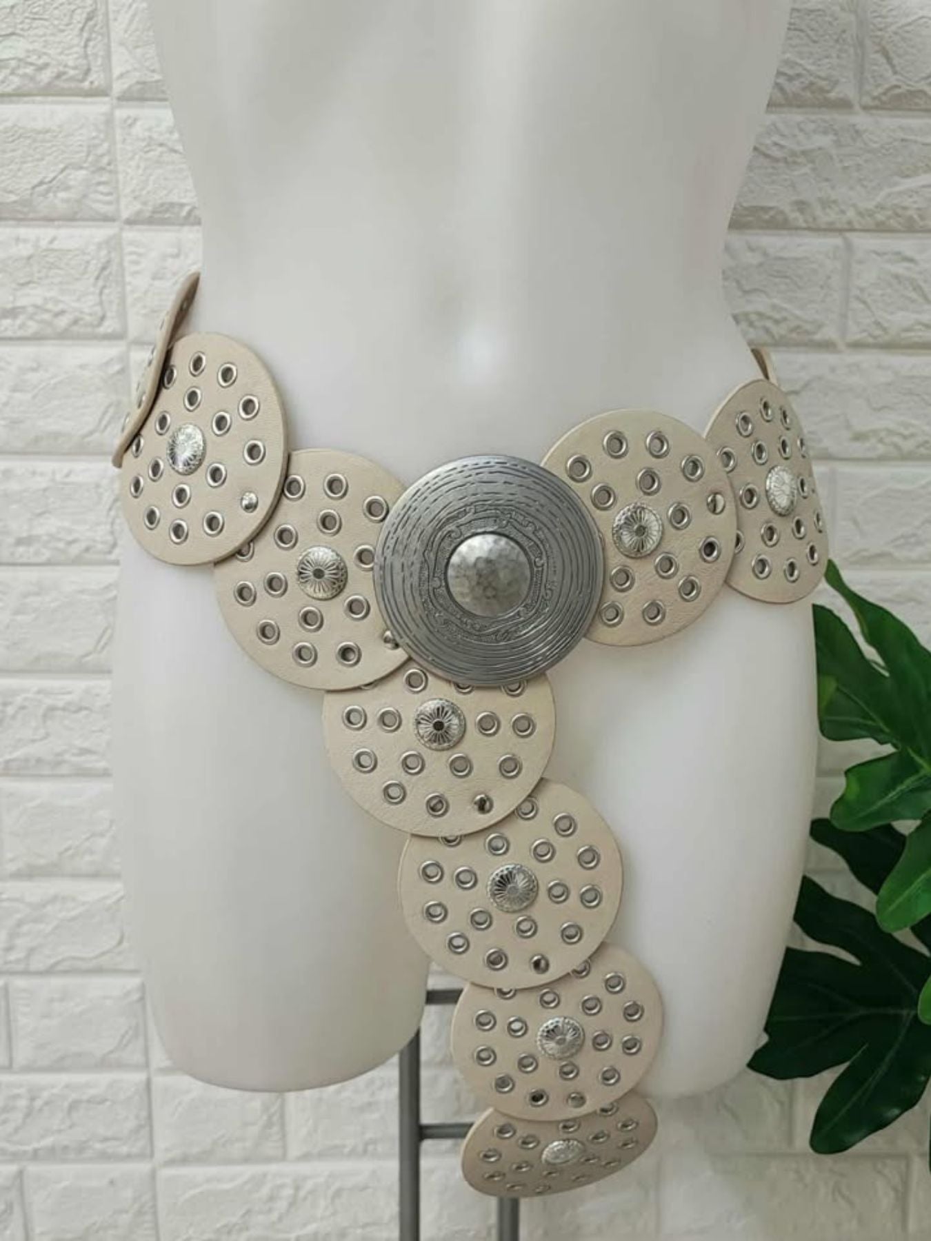 Cinturon de polipiel con tachuelas y hebilla plateada.