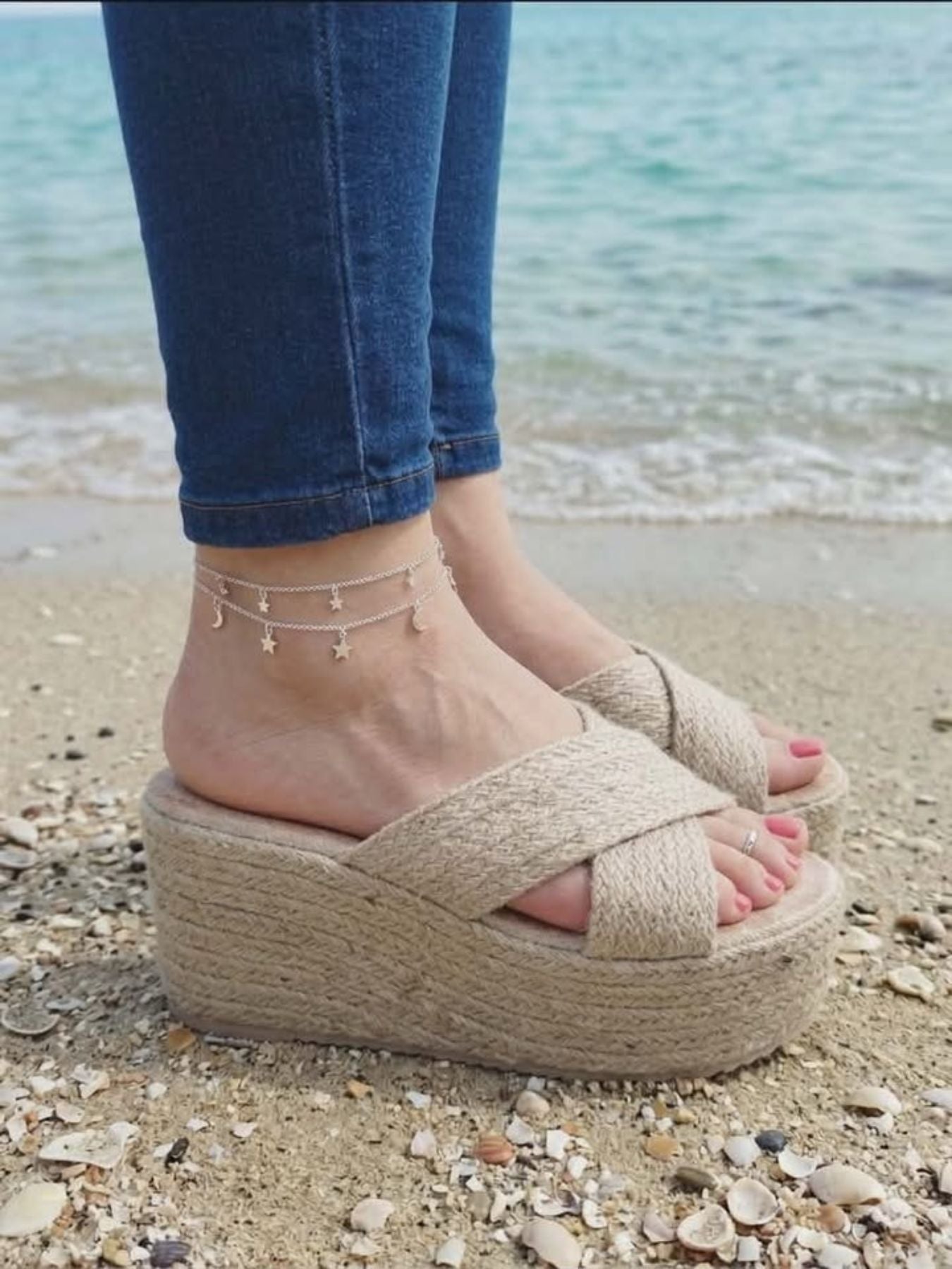 Zapato combinado con esparto.