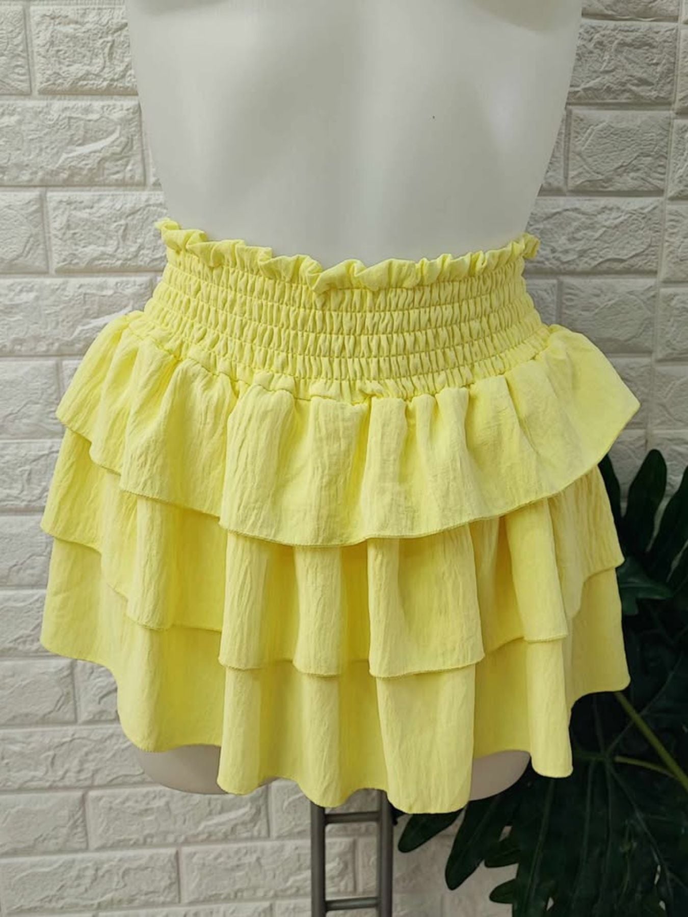 Falda de vuelo combinada con cinturilla de goma tipo nido de abeja.