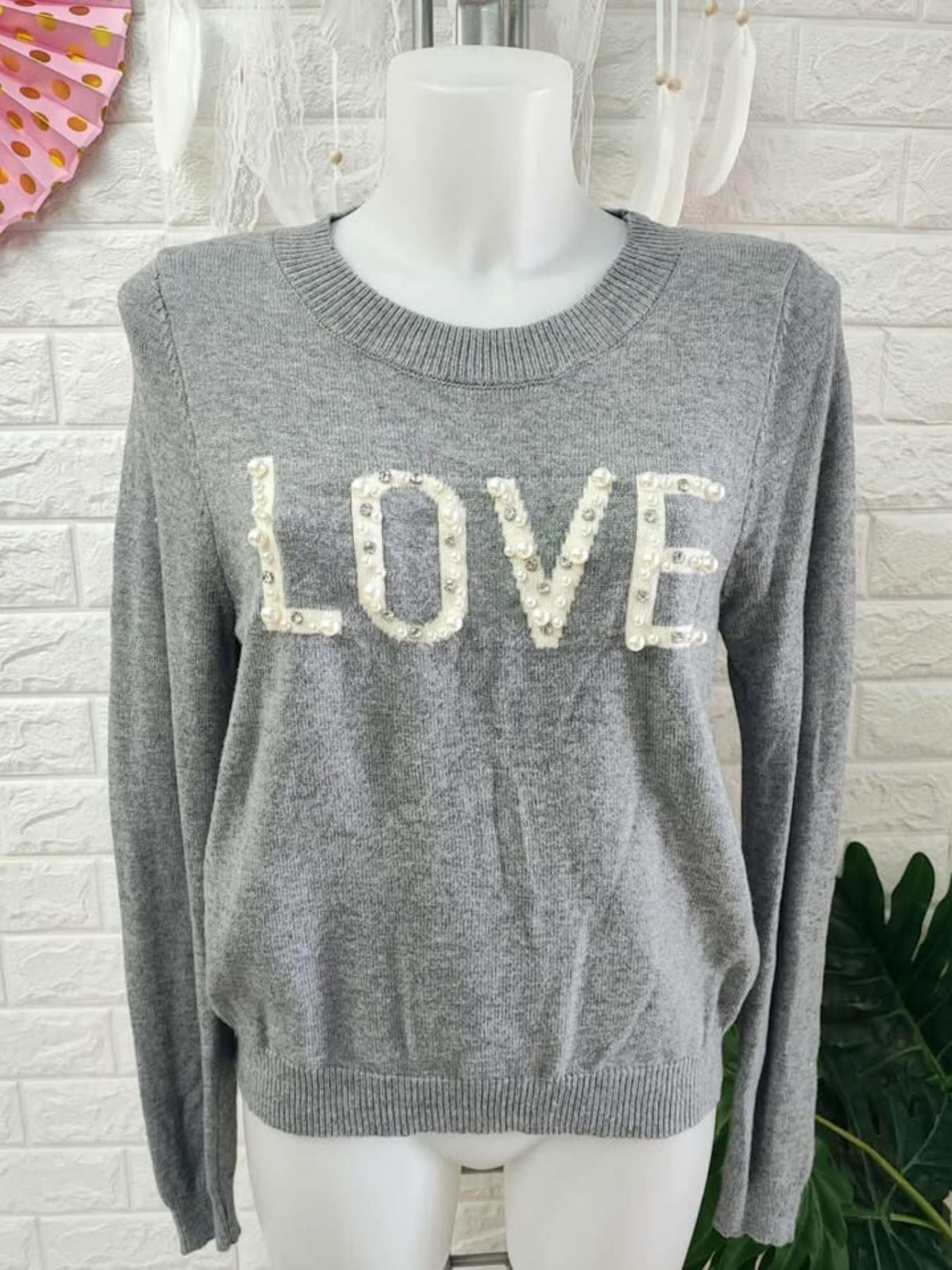 Jersey de punto elastico combinado con perlas y brillantes.