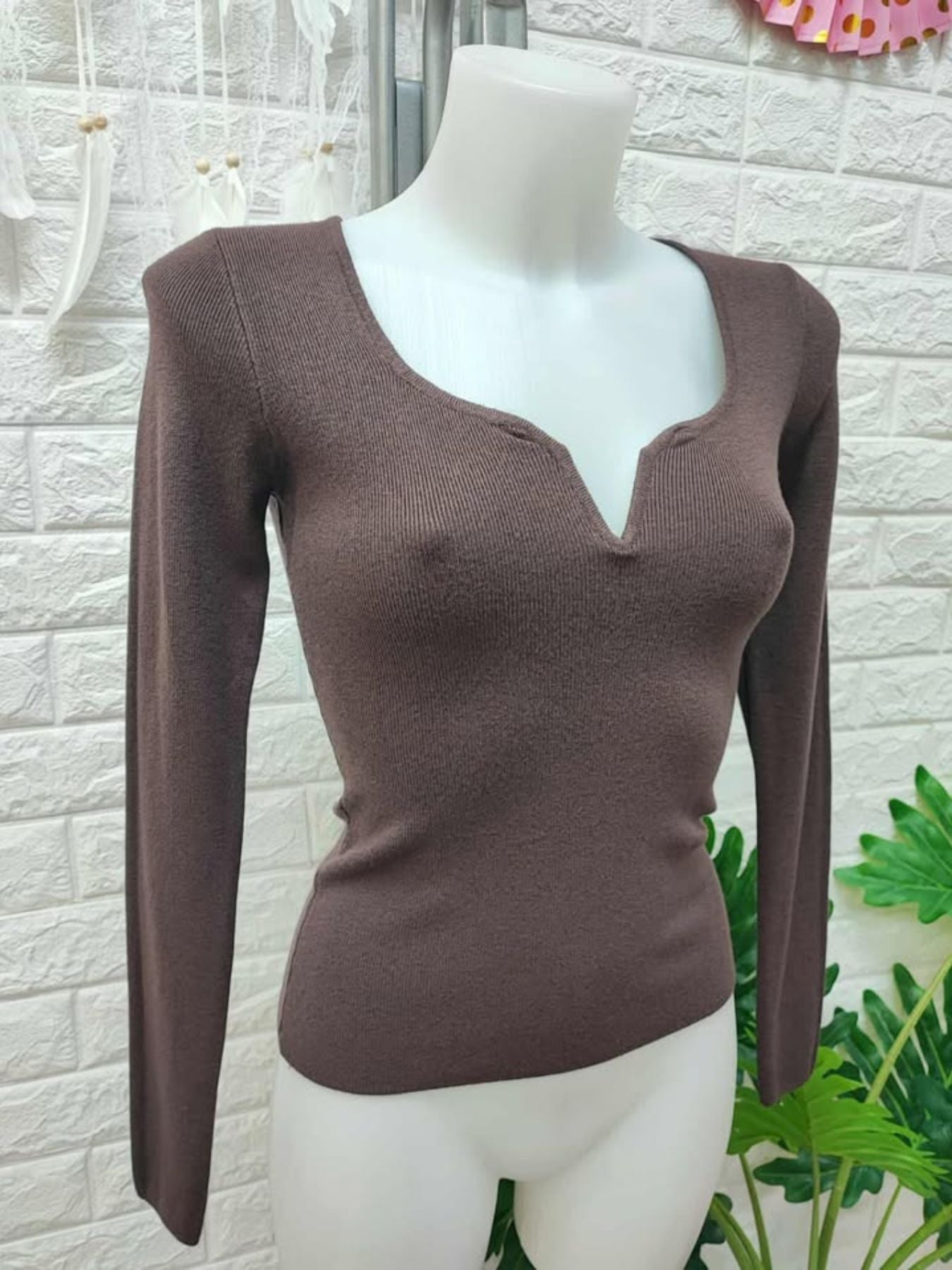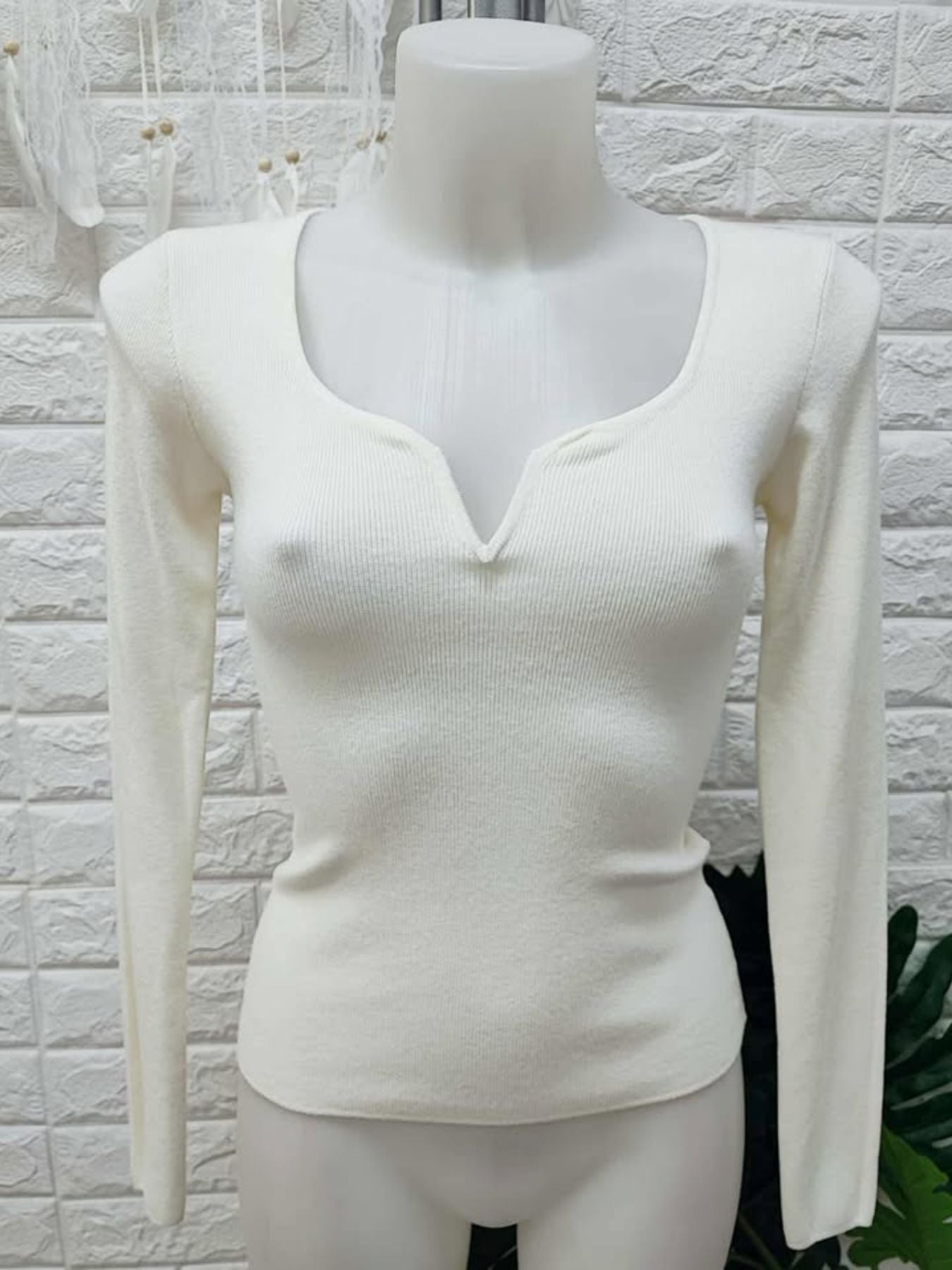 Jersey de punto elastico con detalle metalizado en forma de v en el pecho.