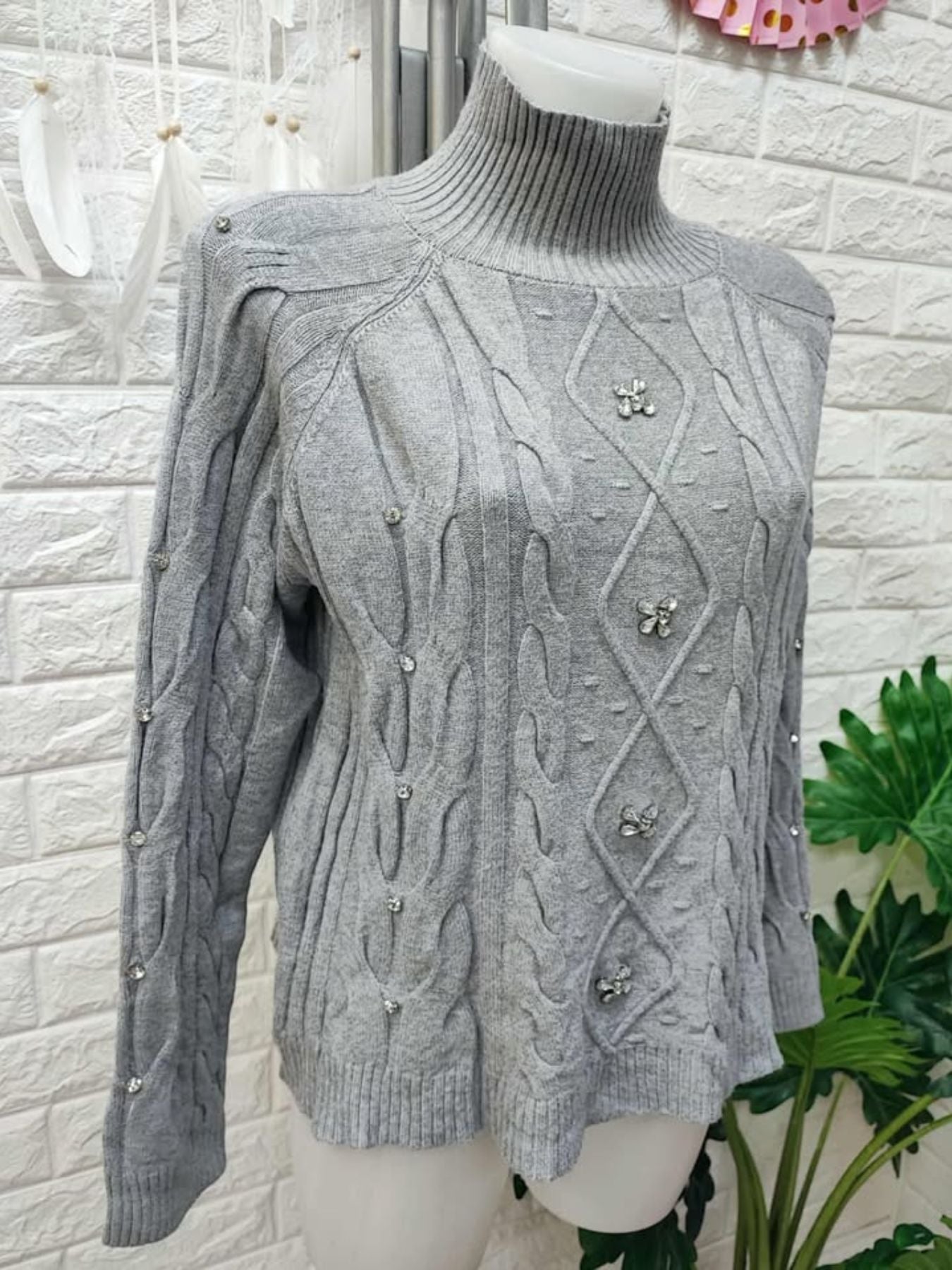 Jersey de punto suave combinado con strass.