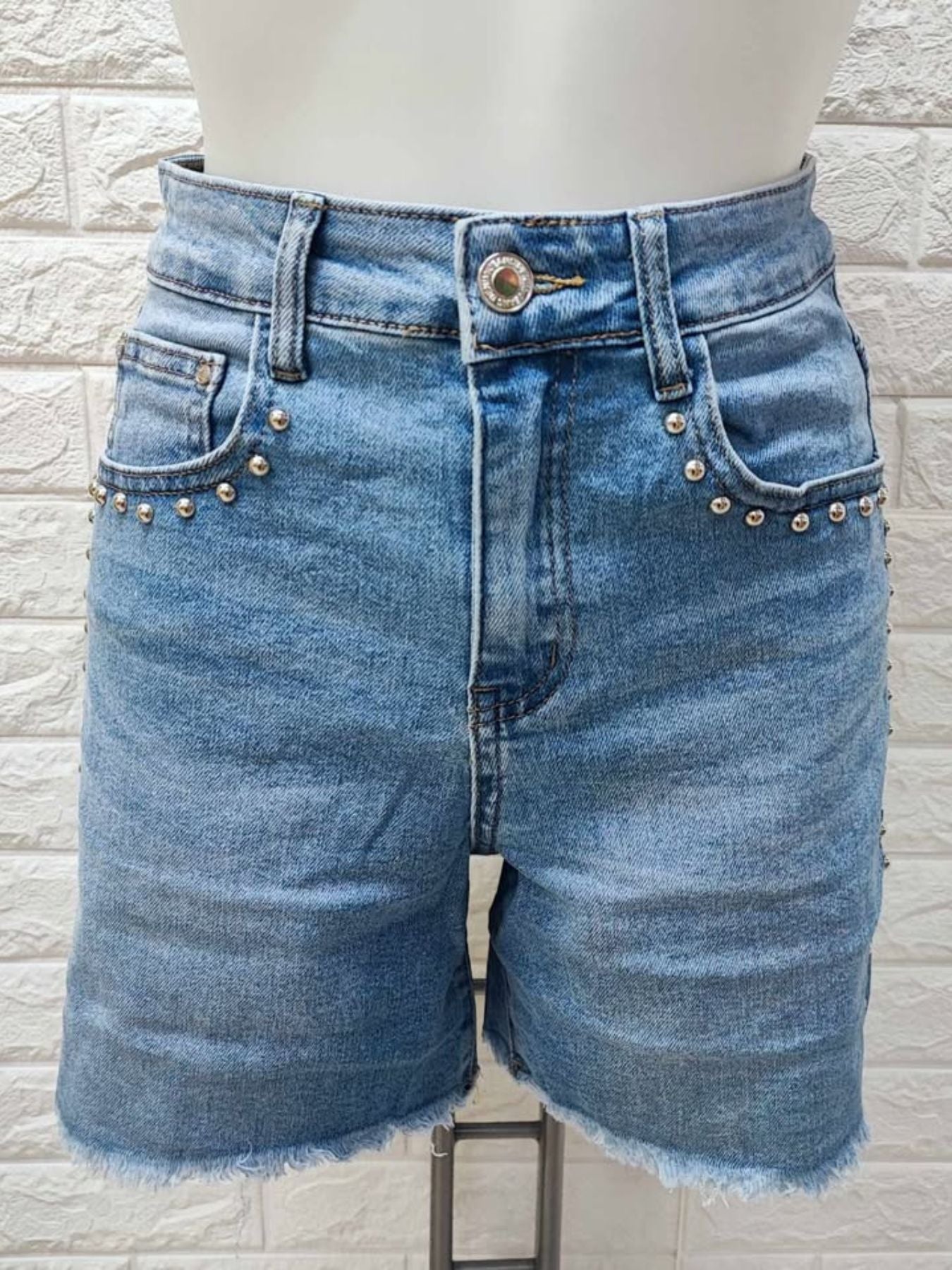 Combinado con tachuelas plateadas.