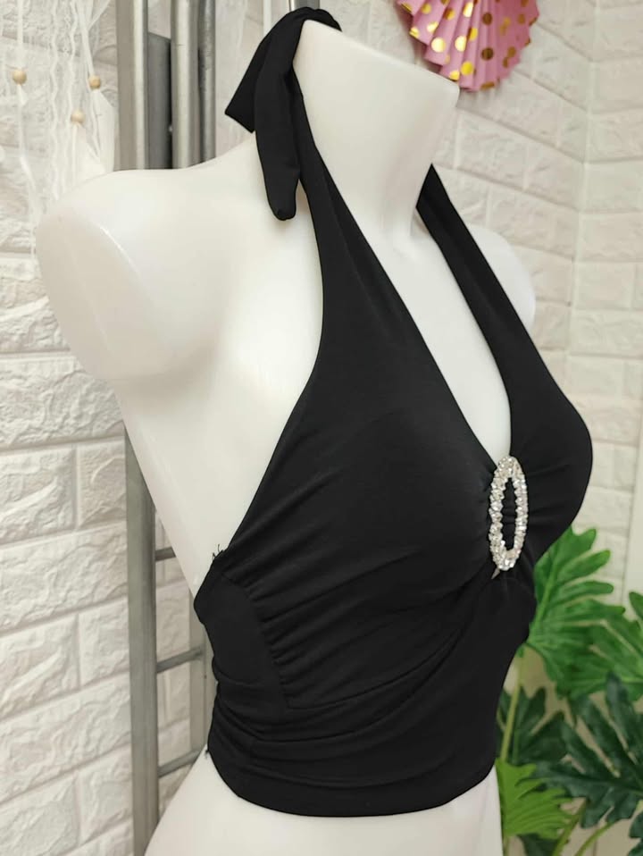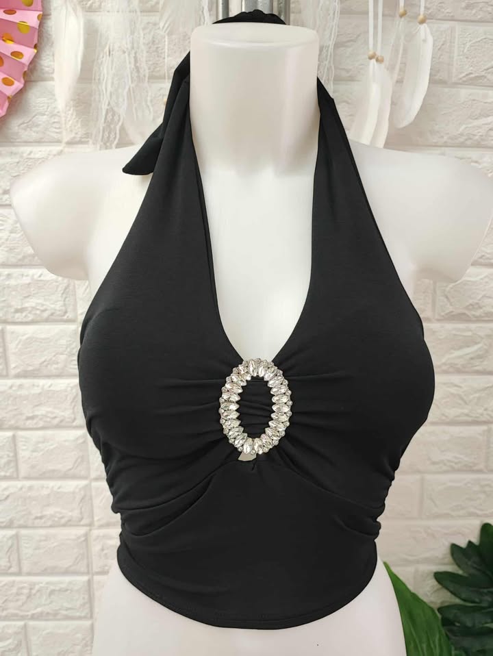Top de lycra combinado con detalle de strass.