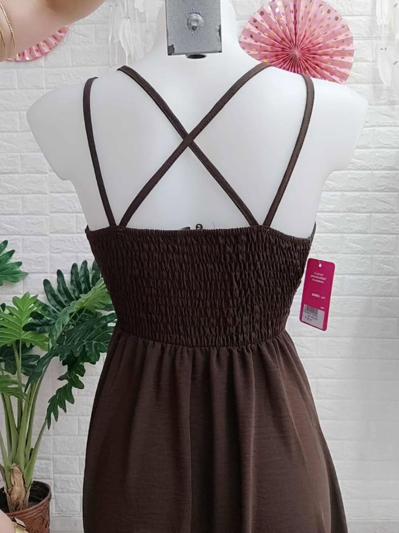 Lleva goma en la cintura y goma tipo nido de abeja en la espalda.