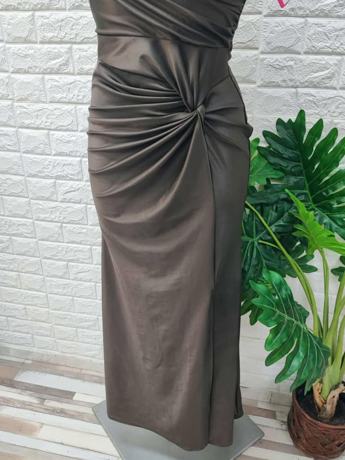 Vestido de lycra elastico combinado con pecho de paillettes.